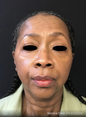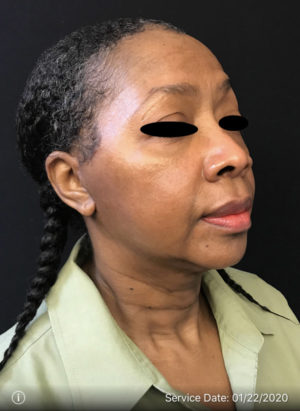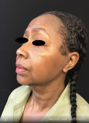 65 yo female 6 weeks after Nouveaulift with Facetite for further neck skin tightening which takes 6-9 months to achieve final results